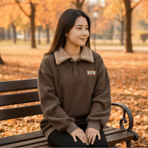 Le sweatshirt femme privilégie un col classique ou polo, parfait pour un look plus raffiné. Les deux offrent le même confort, mais s'adaptent à différentes occasions.
