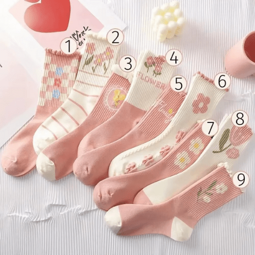 Chaussette Femme - Fleur Rose - 9 paires