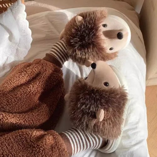 Notre pantoufle femme en forme de hérisson est conçue pour celles qui rêvent de retrouver calme et bien-être à la maison.